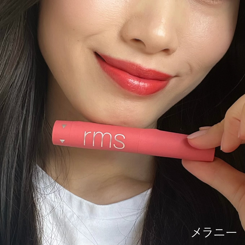 RMS独自のハーバルブレンドによって唇の皮膚を整え、カカドゥプラムエキス※2が保護し、トリオワックスコンプレックスがまるで美容液でケアしたようにベルベットな仕上がりをもたらします。