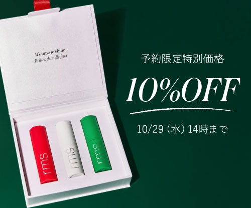 10/20(月)12時~10/29(水)14時までの期間中、The Mini Lip Oil Trioをご予約特別価格10%OFF・送料無料でお求めいただけます。(※通常は税込5,500円以上で送料無料)