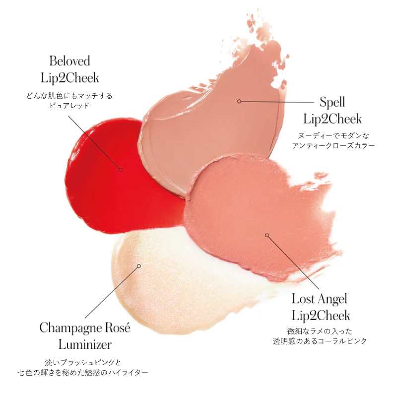 リップやチークとして使える3色と、ブランドを代表するシャンパンローズルミナイザーをひとつにした特別なパレットです。