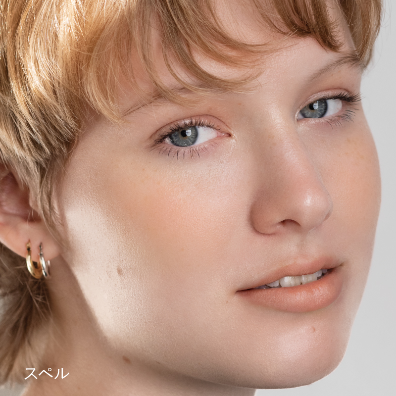 鼻筋には薄くのせて立体感を、上唇の山には少量で口元を印象的に。目頭の“くの字”に入れると、さりげない輝きをプラスできます。